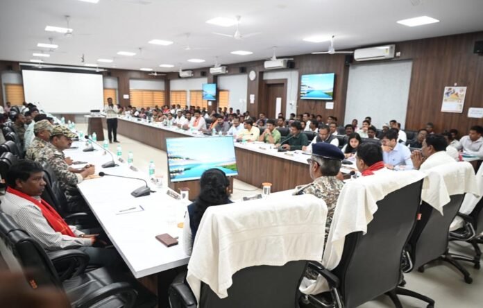 छत्तीसगढ़ शासन के उपमुख्यमंत्री एवं गृहमंत्री विजय शर्मा ने अपने दो दिवसीय प्रवास के दौरान आज बीजापुर जिला कार्यालय के इन्द्रावती सभागार में बीजापुर और सुकमा जिले के जनप्रतिनिधियों, पंचायत प्रतिनिधियों, सरपंचों तथा समाज प्रमुखों, मांझी, चालकी, गायता, पुजारी और पटेलों से संवाद किया।
