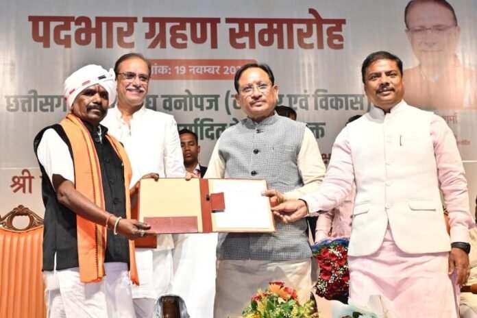 मुख्यमंत्री छत्तीसगढ़ राज्य लघु वनोपज (व्यापार एवं विकास) सहकारी संघ मर्यादित के नवनियुक्त अध्यक्ष और उपाध्यक्ष के पदभार ग्रहण कार्यक्रम में हुए शामिल
