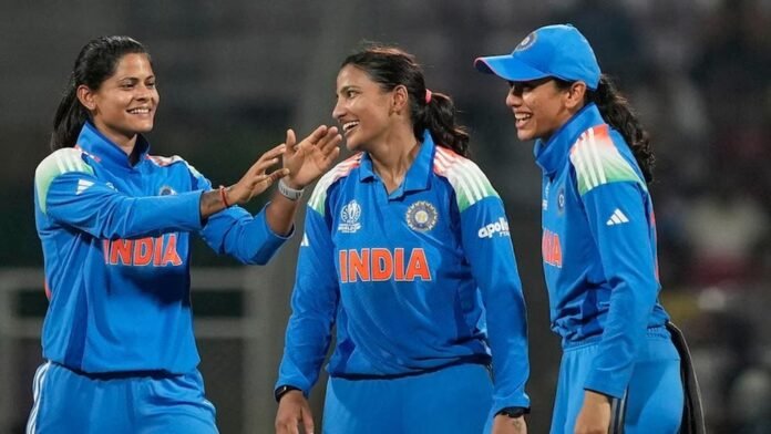 भारत की प्लेइंग इलेवन: प्रतीका रावल, स्मृति मंधाना, हरलीन देयोल, जेमिमा रोड्रिग्स, हरमनप्रीत कौर (कप्तान), दीप्ति शर्मा, उमा छेत्री (विकेटकीपर), अमनजोत कौर, राधा यादव, श्री चरणी, रेणुका सिंह ठाकुर.